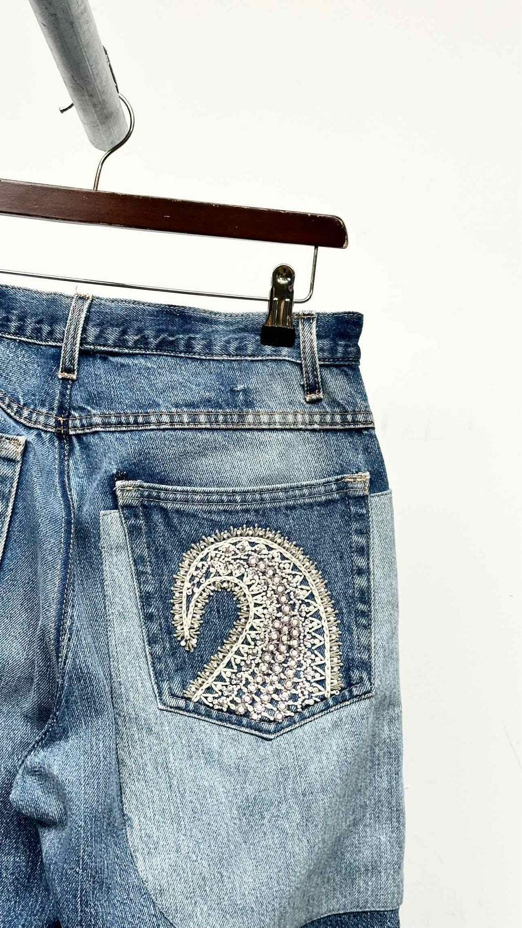 Kartik Research Chikankari Straight-Leg Embellished Panelled Jeans