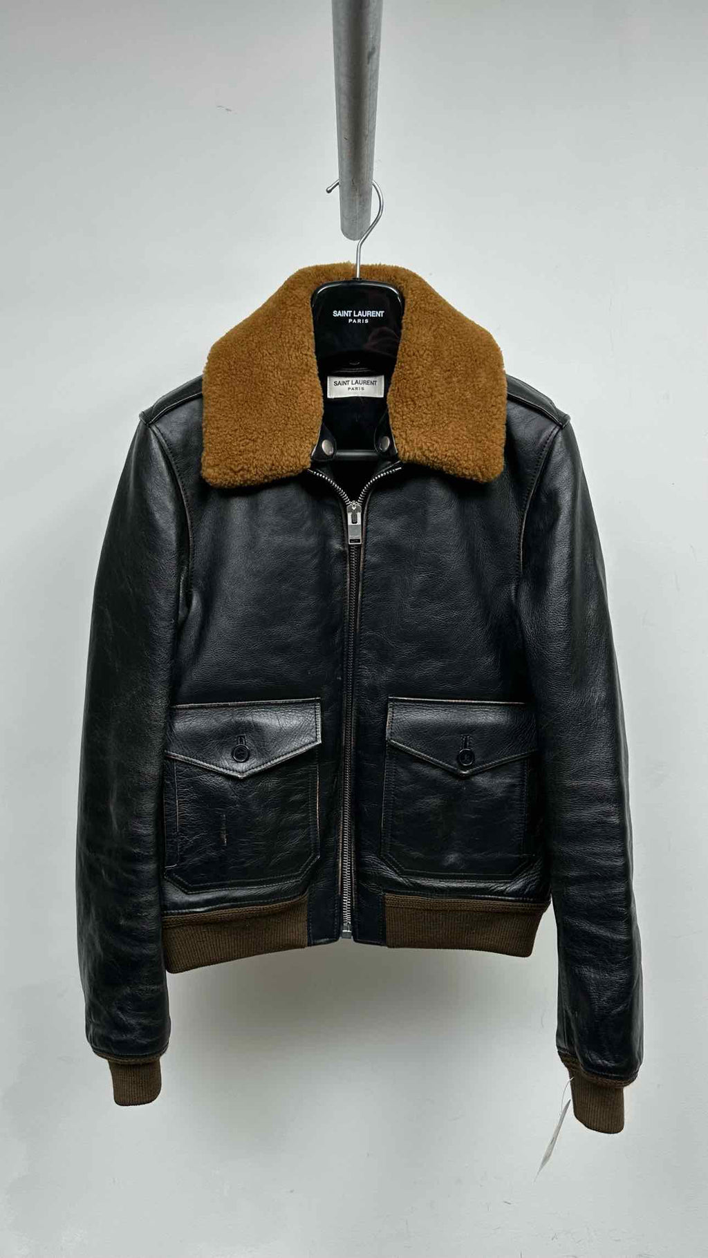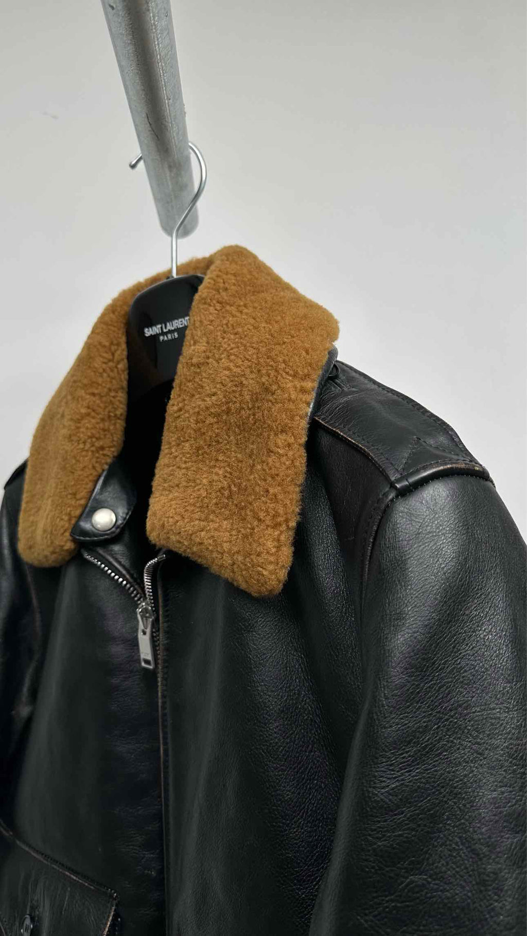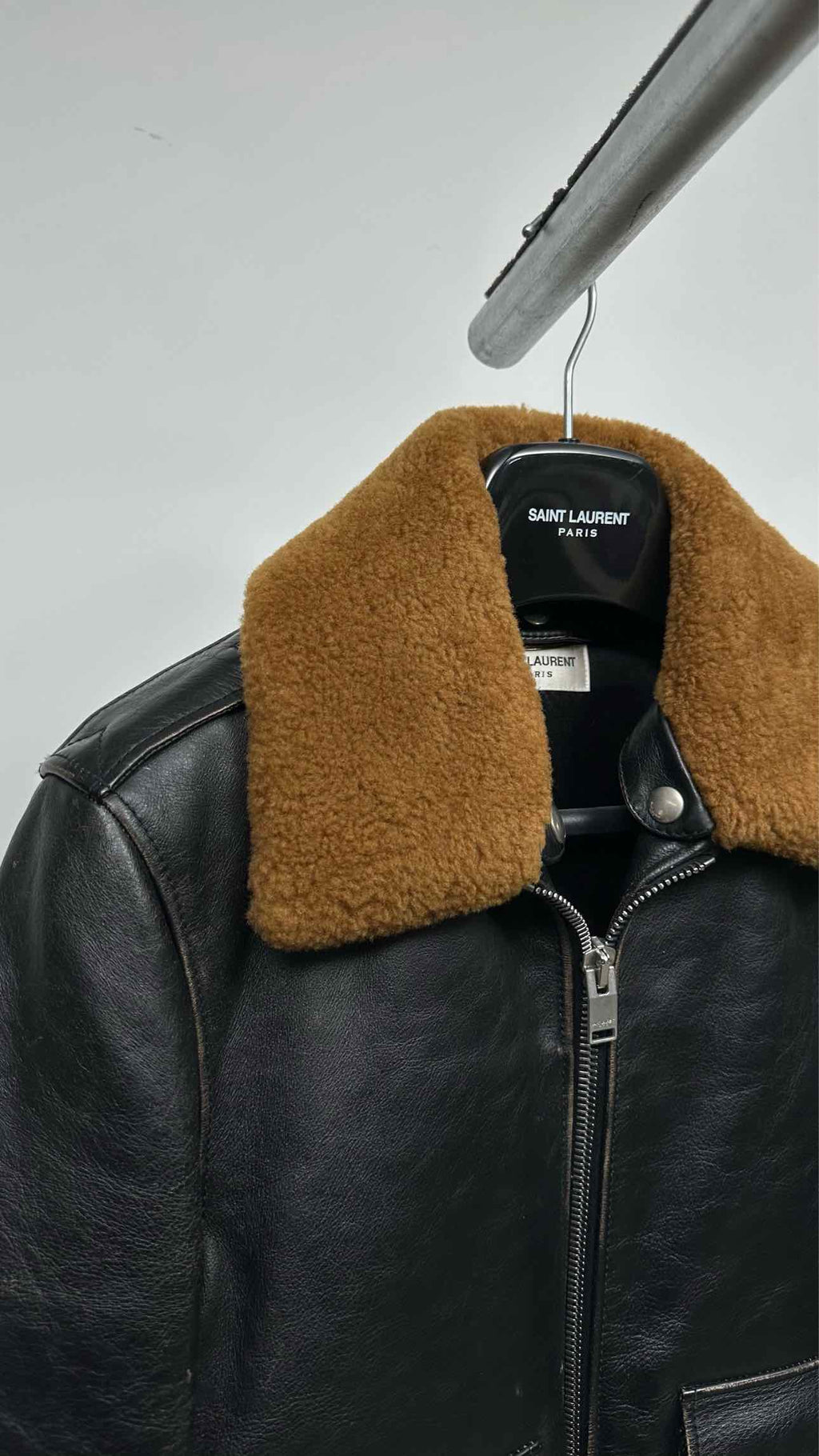 Saint Laurent Shearling-collar Distressed Leather Flight Jacket